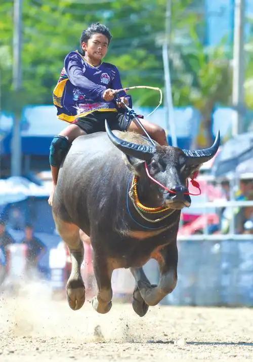 一头好的选美水牛,其“台风”和“镜头感”也同样重要。有头叫Tod的5岁水牛,耳朵内侧是鲜红色的,和乌黑的毛形成鲜明对比,一出场就吸引了所有人的目光,天生就是当明星的料。 除了选美,水牛赛跑更是热闹。百米跑道上,骑手赶着水牛往前冲,水牛庞大的身躯跑起来又快又有力量,看得观众心都跟着提起来。
